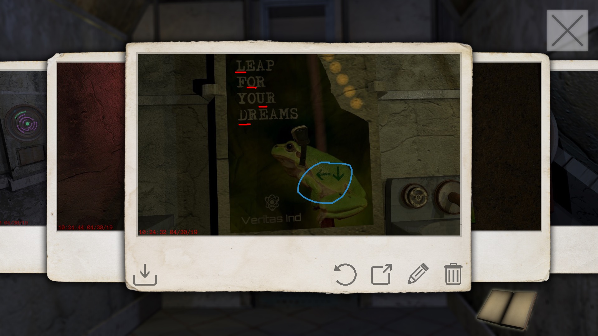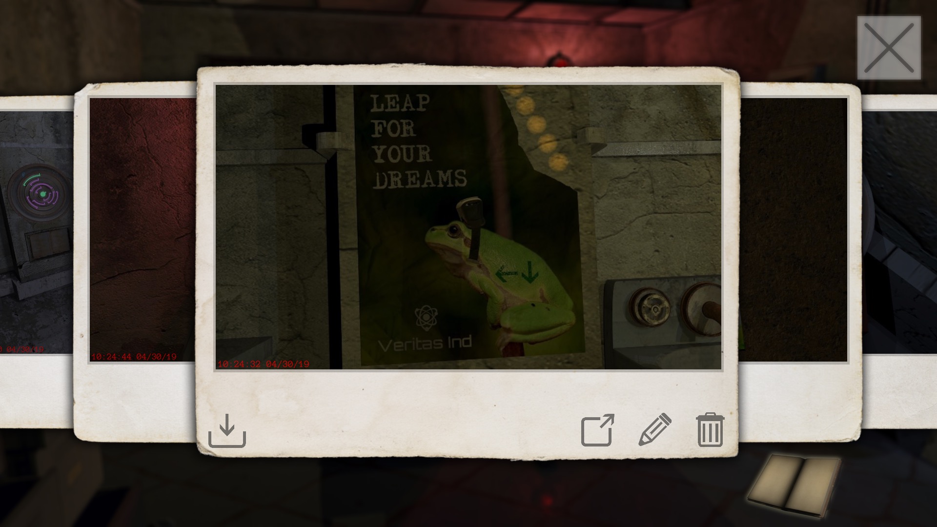 By utilising our not-patent-pending Glitch Camera you can take photos of everything in the game - be it posters, clues, walls, or disturbing blood stains - and use them later to help solve puzzles.